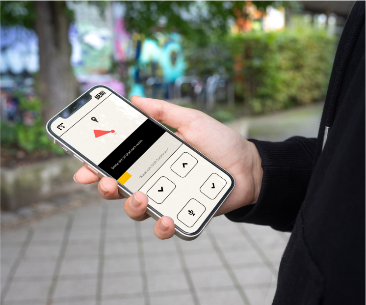 Die App unterstützt Sehbeeinträchtigte Menschen bei der Routenplanung im Innen- und Außenraum und bieten ein umfassendes Mobilitätstraining für unvertraute Umgebungen an. Nutzende können im Trainingsmodus vorab Anweisungen hören und einprägen oder sich zum Zielort navigieren lassen.