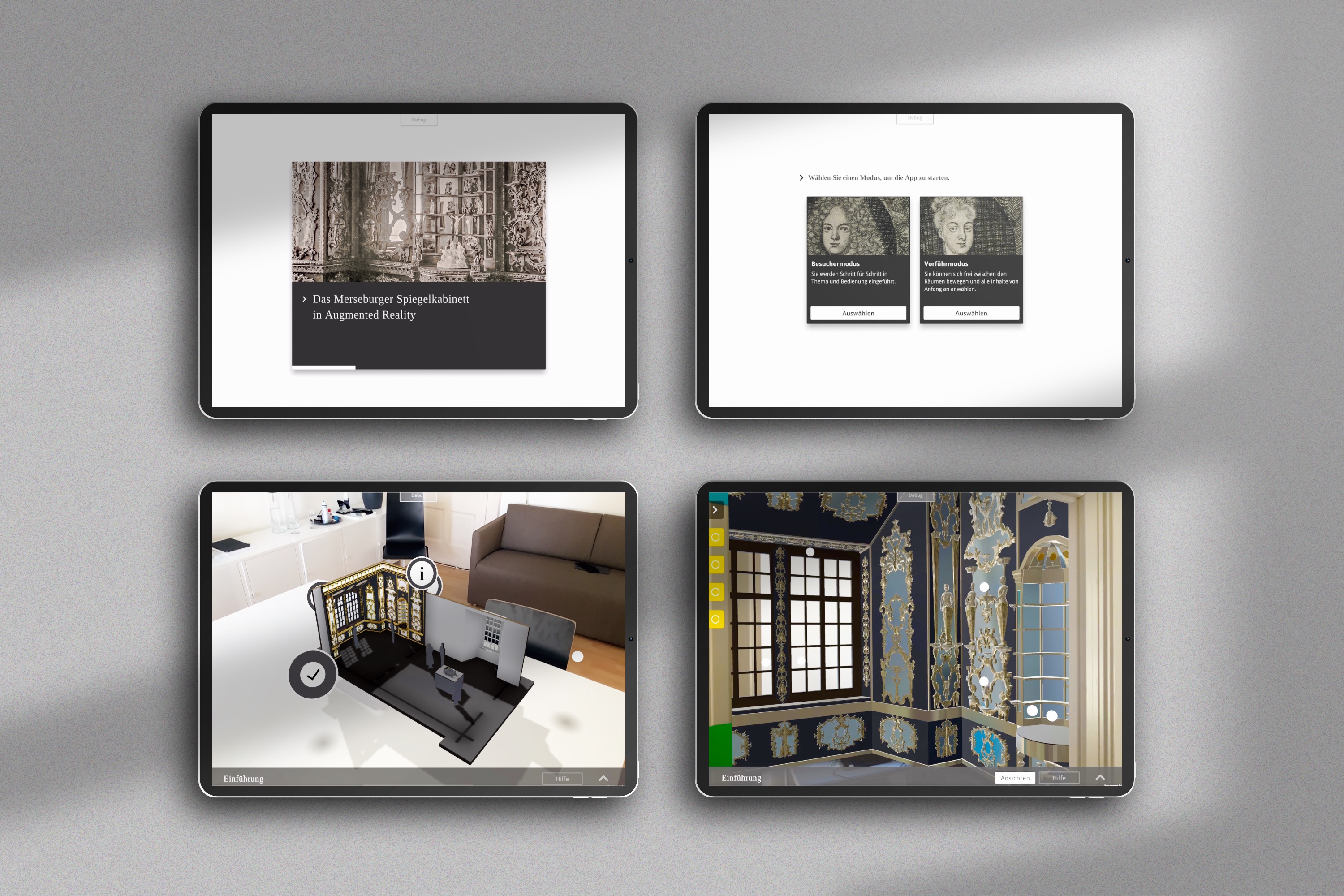 Im Spiegelkabinett selbst werden historische Raumansichten, erhalten Preziosen und Objekte aus dem Inventar bis 1738 thematisiert.